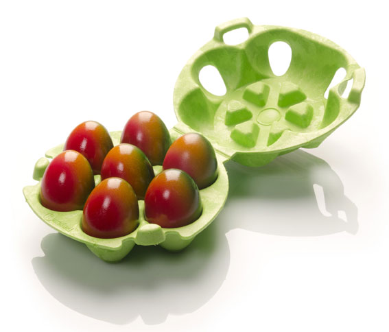 This egg packaging is made out of PaperFoam instead of conventional material (paper pulp or plastic); the coloured (Easter) eggs are visible through holes in the packaging; innovative are the closing mechanism and the round form: like the Rondeel sheds. The tray has a lower carbon footprint than conventional egg trays; the tray can be disposed of via the compost heap or in the waste paper stream. Innovative is the 7-egg design.