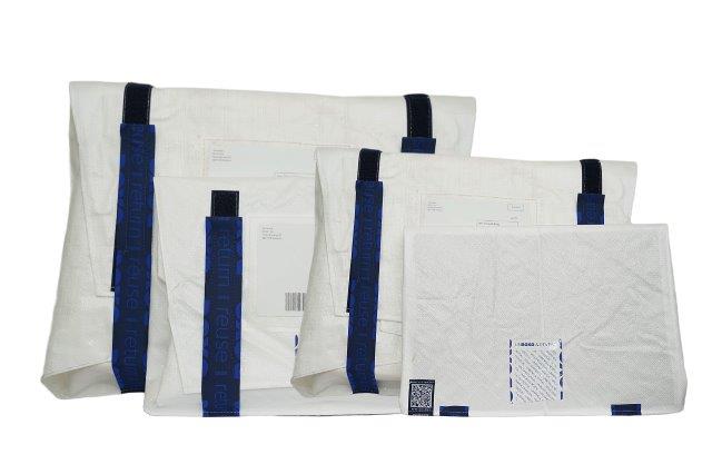 The pack design allows the Boxobags to be folded and compacted; up to ten folded packs can fit inside one. This enables efficient collection at drop-off points, similar to returning a crate of beer. This setup allows BOXO to make the return logistics of reusable shipping packaging efficient, competing with disposable cardboard boxes in terms of price and convenience.